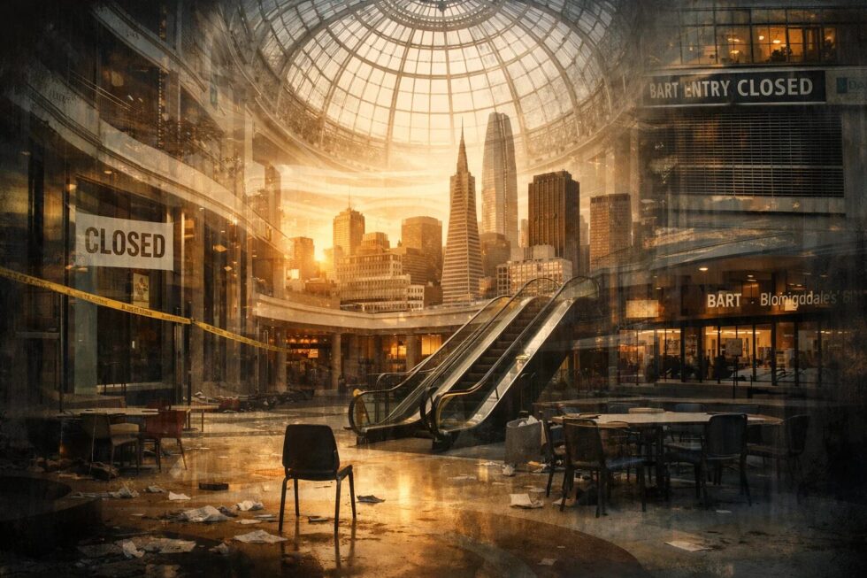 The San Francisco Centre, the city’s largest shopping mall, is set to close permanently on January 26, 2026, marking the end of nearly two decades as a major retail hub on Market Street. The closure follows a prolonged decline accelerated by the COVID-19 pandemic, remote work trends, and reduced tourism. Anchor tenants Nordstrom and Bloomingdale’s departed in 2023 and 2025, respectively, while the last remaining food vendor, Panda Express, ceased operations earlier this month. BART has already closed the Powell Street Station entrance to the mall. Remaining tenants received lease termination notices after lenders acquired the property’s debt in November 2025, reports San Francisco Newsroom via SFChronicle.